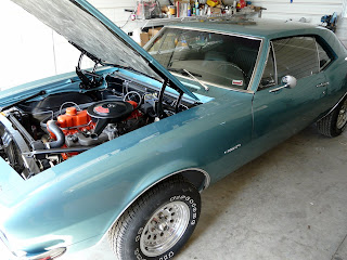 The other Camaro you see glimpses of is a 69. It belongs to the guy that is restoring his 67. My father-in-laws 67 has the 250 cu. in. straight 6 cylinder with the 3 speed on the column (3 on the tree).